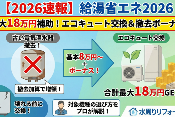 【2026速報】給湯省エネ2026は最大18万円?エコキュート交換の補助金額と撤去ボーナス|水周りリフォーム館